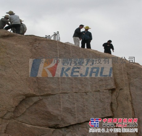 4)钻孔岩石钻孔的方向应垂直于孔所在的表面,孔的大小应与劈裂器的直径相适应,钻孔的深度比楔块组件插入长度深2OOmm。劈裂将劈裂**插人孔中,根据需要适当调整劈裂方向。该项目用的分裂机一台配3把劈裂**,在劈裂时,要把3把劈裂**集中放在3个紧挨在一起的3个孔内,而且楔块方向(劈裂方向)要一致,这样劈力集中,劈裂效果更好,根据岩石大小和坚硬度,可以考虑用 2台(6把劈裂**)同时劈裂,大大提高了劈裂的效率。
